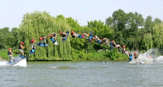 Seine Wakeboardschule "FETZYSWORD" mit Boot und Lift am Salmsee in Steyregg, OÖ wurde zur vielseitigsten und besten Europas gepriesen.